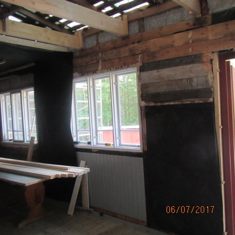 Remonttikuvia Kuistin vesikaton ja yläpohjan panelointi 2017 Kuistin vesikaton ja yläpohjan kunnostusta 11 Kuva 11 / 21